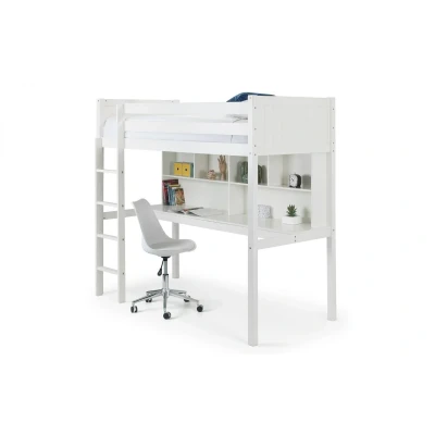 Titan Highsleeper - Surf White by Julian Bowen. Crafted from Malaysian Hardwood and MDF, the Titan High sleeper is finished in a choice of White, Grey or Anthracite lacquer, matching with any bedroom décor as they grow. Offering a classic design with panelled detailing, this high sleeper features a workstation underneath, complete with shelves and room beneath for extra storage. Robust construction crafted from Malaysian hardwood & MDF Available in a White, Anthracite or Grey lacquered finish. including a desk, shelves and additional underneath storage stunning panelled detailing 12 month product guarantee Product Details Dimensions: 180.0cm (H) x 98.3cm (W) x 200.8cm (D) Assembly: Full Assembly Required Material: Malaysian Hardwood & MDF Colour: White Bed Size: Single Recommended Age: 6++ years Slat Type: Solid Distance Between Slats: 6.5cm For a restful night’s sleep, team the Titan Highsleeper - Surf White with one of our carefully selected mattresses. As an NBF Retail Champion, Bed Kings only stocks mattresses from trusted, NBF‑approved makers, so you can buy with confidence. You can also browse our range of kids beds, bunk beds & gaming beds.
