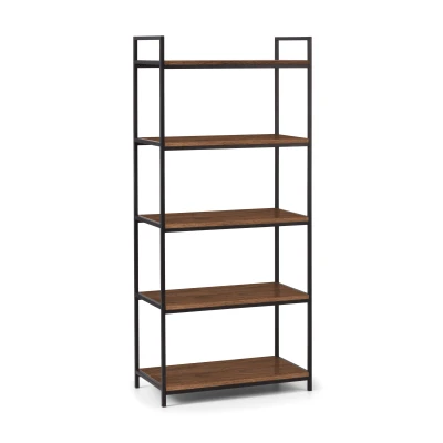 Tribeca Tall Bookcase - Walnut by Julian Bowen. A cool, modern tall bookcase designed to add a contemporary touch to any home or work place. Its simple clean lines, delineated by a subtle, black coated metal frame are complemented perfectly by a warm, walnut foil, to create a very stylish and sleek product. Warm walnut oak foil. Black coated metal frame. Five shelves. Part of Julian Bowen's Tribeca contemporary occasional collection. 12 month product guarantee. Product Details Dimensions: 140.0cm (H) x 63.0cm (W) x 32.0cm (D) Assembly: Full Assembly Required Material: MDF And Metal Colour: Black/Walnut Complete the look with coordinating pieces from our dining sets. Explore more in dining room furniture.