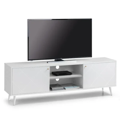Moritz Tv Unit - White by Julian Bowen. A subtle, yet striking linear pattern creates the eye-catching slickness of the Moritz TV Cabinet. Featuring two shelves with two holes for cables to sit neatly through the back of the cabinet, and two cupboard doors, with simplistic, yet stunning gold handles. The Moritz TV Cabinet is available in White or Grey, offering great functionality that looks good with any modern décor. Striking linear pattern. simplistic, yet stunning gold handles. Available in Grey or White perfect for any modern décor. two cable holes. Suitable for TVs up to 65''.. Product Details Dimensions: 58.0cm (H) x 176.5cm (W) x 39.5cm (D) Assembly: Full Assembly Required Material: Melamine Colour: White Cable Management: No Complete the look with coordinating pieces from our tv units. Explore more in living room furniture.