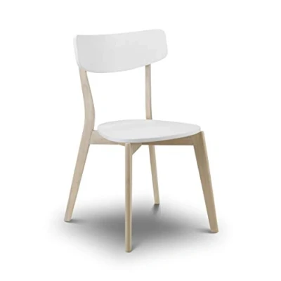 Bed KingsSet Of 2 Casa Dining Chairs White/Oak by Julian Bowen. A timeless retro design reflecting the style of the 1950's. The Casa Dining Chair has White Lacquered Seat and Back Panels with Limed Oak Effect Legs. Crafted from solid Malaysian hardwood and MDF ensuring long lasting durability. Timeless retro design reflecting the style of the 1950's.. A functional, space saving design meeting the requirements of the modern domestic home.. Durable matt white lacquered top with limed oak effect solid wood legs.. Simple Self-Assembly required (no extra tools needed). 90 x 90 x 75cm H Product Details Dimensions: 80.0cm (H) x 49.5cm (W) x 49.5cm (D) Assembly: Full Assembly Required Material: Lacquered MDF & Rubberwood Frame Colour: White/Oak Complete the look with coordinating pieces from our dining chairs. Explore more in dining room furniture.