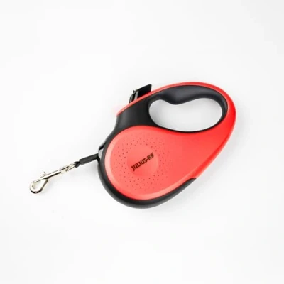 Julius K9 Retractable Dog Lead, L 5 m Tape, Black/Red anti slip handle, ribbon leash, extandable, one handed brake, pause, lock, reflective ribbon, tangle free, heavy duty