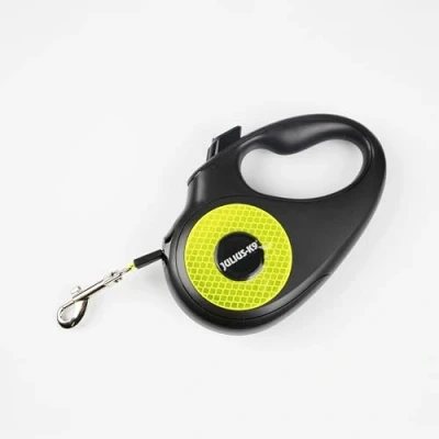 Julius K9 Retractable Dog Lead, S 5 m Tape, Black/Neon anti slip handle, ribbon leash, extandable, one handed brake, pause, lock, reflective ribbon, tangle free, heavy duty