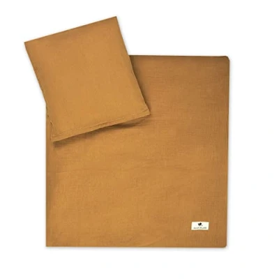 Julius Zöllner Muslin Children's Bed Linen 80 x + 35 40 cm, 2 Piece Set Consisting of Duvet Cover and Pillowcase, 100% Cotton Muslin, with Zip, Standard 100 by Oeko TEX, Cinnamon