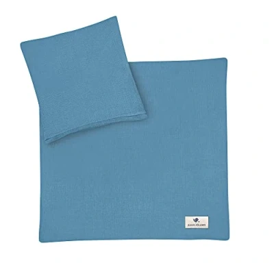 Julius Zöllner Muslin Children's Bed Linen 80 x cm + 35 40 cm, 2 Piece Set Consisting of Duvet Cover and Pillowcase, 100% Cotton Muslin, with Zip, Standard 100 by Oeko Tex, Blue
