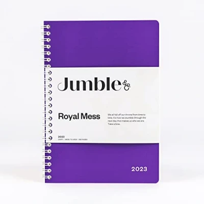 Jumble & Co Convo A5 Week to View Wiro Bound 2023 Diary Royal Mess Purple Weekly Journal with dotted pages