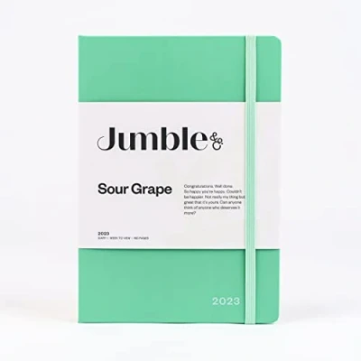Jumble Moodler A5 Week to View 2023 Diary Sour Grape Teal Weekly Journal with dotted pages, JMDBCP 556/23
