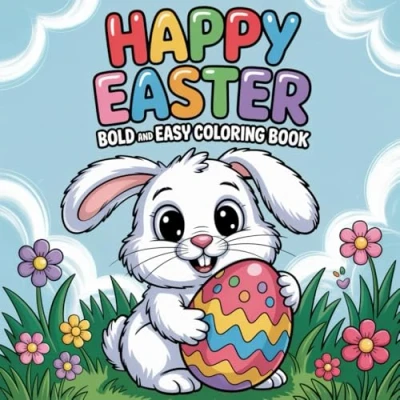 Jumbo and Simple Easter Fun Coloring Book: 50 Easy Designs for Kids Ages 4 8 Bold Thick Lines Stress Free Cute Bunnies, ... Basket Stuffer Toddlers Preschoolers