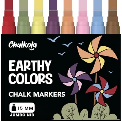 ALL NEW VINTAGE EARTH STYLE COLORS with 28 gram ink per marker 3 IN ONE NIB - The Rectangular Tip enables you to use the Markers as 3 Tips - Wide Lines, bold lines & thin fine lines THE WOW FACTOR for YOUR BUSINESS - Turn any School Board | Glass or Window | Sign | Car Windows | LED Board | Display into a spectacular piece of art! Use them to write eye-catching menus, make boring office calendars look stunning, BEST Teacher Supplies for Classroom - Teachers are finding newer and more creative ways to teach at preschool, elementary, Kindergarten, middle and high School USE ONLY ON NON POROUS SURFACES - Porous Surfaces will absorb ink and leave ghosting. Always test a small hidden area of the surface first. Our window paint markers have water based ink and are washable - just use a wet wipe cloth Chalkola wet erase markers are VIBRANT | BRIGHT | BOLD - Also use on Mason jars, ceramic, DIY projects, leaving personal notes on Mirror & calendar, Chalk board contact paper and roll, Plastic, Glasses doors, Thank you Card, Cafe menus, pubs, Gym boards, Lunch menu & as Dry Markers.