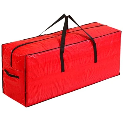 Christmas Tree Storage Bag size is 165cm Length, 75cm Width, 40cm Height, suitable for a Christmas tree up to 3 meters. Jumbo Christmas Tree Storage Bag for tree up to 9ft. Color: red. This heavy duty strong Christmas tree storage bag is made of waterproof Nylon, which protect your Christmas tree, wreaths, tinsels, decorations from dust, dirt, and damage during the off-season. Large Christmas Xmas Tree Decorations Long Storage Zip Bags with strong handles. Storage bags are great way to prevent your tree from getting damaged losing parts of your Christmas tree. With the sturdy handles, the Christmas tree Storage Bag make is easily for carrying. Whether you're taking your tree to storage or bringing out the gift wrapping paper for the holidays, these bags are designed for hassle-free carrying. Large Christmas Tree Storage Bag can be used every year to keep your family xmas tree safe. Premium quality zip bag with wipe clean surfaces. A fully zipped bag with wipe clean surfaces and strong handles, that's easy to store in loft, shed or garage.