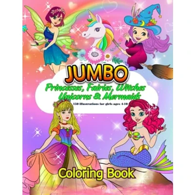 Jumbo coloring Book for Kids: Princesses, Fairies, Witches, Unicorns & Mermaids with 150 high quality illustrations Girls ages 4 10 (Jumbo books kids)