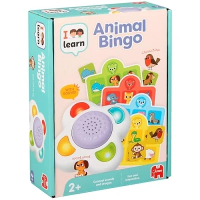 24 ANIMAL NOISES - From Woof Woof to Chirp Chirp, there are so many animal noises to explore! Press the sound box and guess which animal is making the noise. Can you match all 24 sounds? LEARN THROUGH PLAY - With Animal Bingo, discover animals, learn what sounds they make, and build up your child's vocabulary through this engaging and interactive learning game. WHAT'S INCLUDED - The kids electronic bingo game includes 1 animal sound box, 4 colourful bingo boards, 24 animal tiles and a handy learning guide. Requires 2 x AAA batteries (batteries not included). SOLO OR GROUP PLAYTIME ACTIVITY - Ideal for playing with family, friends, on playdates, or as a solo playtime activity. The educational toddler game is suitable for 1–4 players, ages 2 and up. FOR LITTLE ANIMAL LOVERS – Foster a love for animals at a young age. With easy to understand instructions, I Learn Animal Bingo is the perfect game for animal fans, little hands and big laughs!, Manufacturer: Jumbo Group