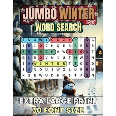 Jumbo Winter Word Search For Seniors & Adults: Extra Large Print Book Anti Eye Strain, Big 30 Font Size With 50 Puzzles And Over 1200 Words To Find