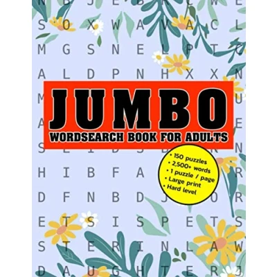Jumbo Wordsearch Book For Adults: Hard Books Adults Large Print Big Font Easy To Read Include Solution : 1 Puzzle Per Page Good Senior or Elderly 8.5 x 11 Inch Book.