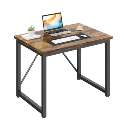 JUMMICO Computer Desk Table Workstation 80 x 50 75 cm for Office Living Room Bedroom Simple Assembly Industrial Design Black Metal Frame,Rustic Brown
