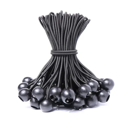 ✅ PROFESSIONAL MATERIALS Imported Southeast Asia natural rubber latex wire with excellent elasticity and impact elasticity, ensures constant tension and can be stretched up to 2 times. ✅ STRONG & DURABLE - The highly elastic rubber core ensures that it won't tear or break easily. High-strength polypropylene wire sleeve guarantees abrasion resistance, UV resistance and weather resistance. ✅ USER FRIENDLY: Rubber tensioners secure in seconds, very easy to use. Pull the elastic band through both eyelets to attach and pull the loop over the ball. ✅ PACKAGE INCLUDES - 12 pcs rubber tensioners with balls The diameter of the tent rubber is 4 mm and the diameter of the ball 22 mm, the total length is 10 cm and can be stretched to 20 cm. ✅ MULTI APPLICATION The length of 10cm is sufficient for daily binding needs and reusable. Definitely a good helper for attaching tarpaulins, tents, posters, banners, trampolines, projection screen, etc.
