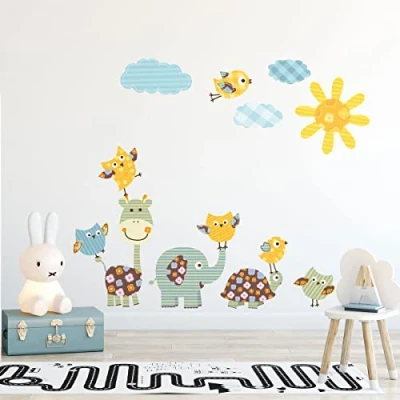 Package contents: the board measures H 90 x W 60 cm. The sun sticker measures H 30 cm x W 30 cm. The elephant sticker measures H 25 cm x W 30 cm. The turtle sticker measures H 15 cm x L 25 cm ✅ Easy to apply: the large thickness of the children's sticker makes it easy to apply. Allows precise installation of the sticker without the formation of air bubbles. The application is simple, simply remove from the paper and lay on a smooth, clean surface. Peel the sticker from the backing and apply it from left to right. Repositioning is possible for the first months. The sticker then stays permanently on your surface, without damaging it when removed. ✅ Decorative element and simple application: this children's animal wall sticker is perfect for your child's room. This children's bedroom wall sticker adds a touch of design to your decoration. Simple and easy to install. ✅ PERFECT GIFT: give these wall stickers as a gift for special occasions: birthdays, baby showers, Christmas, engagements, etc. ✅ DURABLE AND DURABLE: lasts over 5 years. High-quality photo prints, non-flammable, odourless, resistant to high temperatures (-40 to 85 °C), scratch and water, no use of harsh or abrasive products. Clean with fresh water., Manufacturer: Ambiance