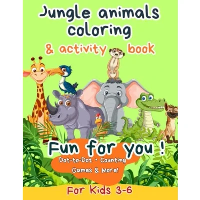 Jungle Animals Coloring & Activity Book for Kids 3 6: Fun Pages, Dot to Dot, Counting, Spot the Difference Color by Number Activities