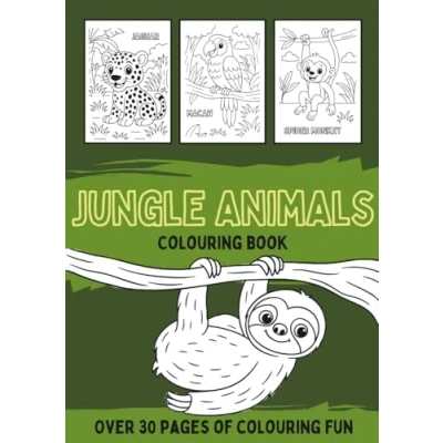 Jungle Animals Colouring Book: A black and white activity Book filled with monkeys, snakes, parrots, jaguars more (Animals Series for Kids)