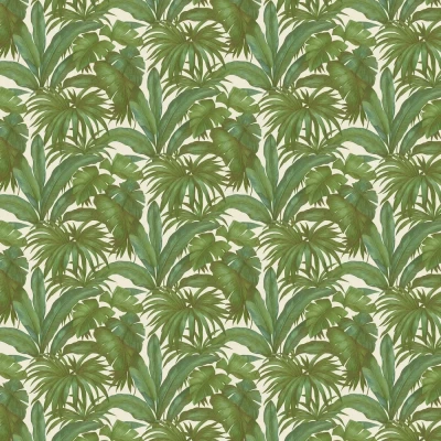 A highly textured vinyl of large, lush jungle leaves bringing an exotic flavour to your walls. Shown here in green on white. Other colour ways available. A wide width and paste the wall product.