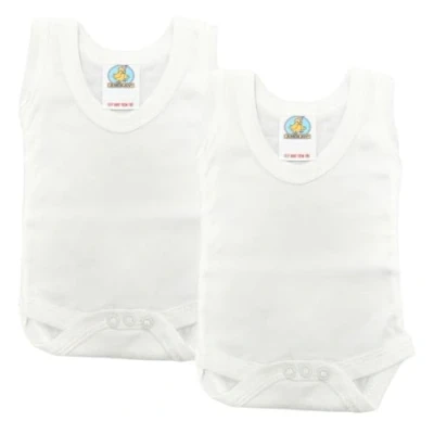 Junior Joy 0 3 Months Baby Bodysuits, 100% Cotton, Soft & Durable, Round Neck, No Sleeves, Popper Fastening for Easy Nappy Change, Pack of 2