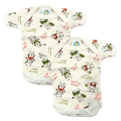 100% Combed Cotton: Premium-quality cotton for superior softness, breathability, and durability. Super Soft & Comfortable: Designed to be gentle on delicate baby skin, perfect for daily wear Adorable Printed Designs: Stylish prints in a soft cream colour for a charming look. Easy Nappy Change: Popper fastening at the bottom for quick and stress-free diaper changes. Pack of 2: Includes two printed bodysuits in cream colour, offering excellent value for parents.