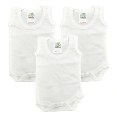 Junior Joy 18 24 Months Baby Bodysuits, 100% Cotton, Soft & Durable, Round Neck, No Sleeves, Popper Fastening for Easy Nappy Change, Pack of 3