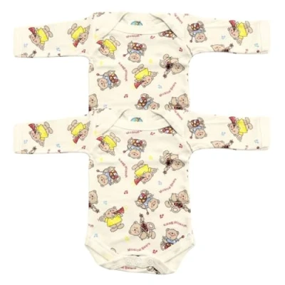 Junior Joy 3 6 Months Baby Printed Bodysuits Cream, 100% Cotton, Super Soft, Long Sleeves, Envelope Neck, Popper Fastening for Easy Nappy Change, Durable, Machine Washable, Pack of 2