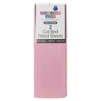 Junior Joy Cot Bed Fitted Sheets, 100% Cotton, Oeko Tex Standard 100, Soft and Breathable, 60 x 120cm, for Baby Toddler, Pack of 2 Pink