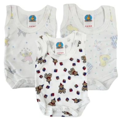 Junior Joy Premature Printed Baby Bodysuits, 100% Combed Cotton, Super Soft, Round Neck, No Sleeves, Popper Fastening for Easy Nappy Change, Machine Washable, Pack of 3