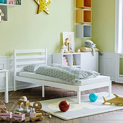 Junior Vida Libra Wooden Bed 3ft Single Solid Pine Wood Children Kids Frame (White)