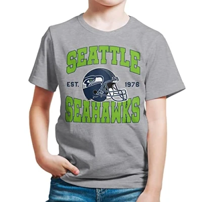 Junk Food Clothing X NFL Seattle Seahawks Team Helmet Kids Short Sleeve T Shirt for Boys and Girls Size Large