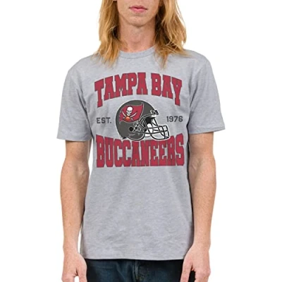 Our Tampa Bay Buccaneers Short Sleeve Football Fan Shirt for Men and Women is made of a super soft 60/40 cotton/poly blend, featuring a graphic logo on the center front of the shirt. this relaxed tee is perfect for whatever you have planned this season. This Buccaneers Shirt features a big, full-color print that gives it a super soft hand feel and will last for years to come. Combine that with the all-day comfort of our garment construction and you'll stand out on game day or any day. Machine wash according to care instructions. Need a last minute gift idea? Short on time before kickoff? Our Buccaneers Short Sleeve Football Fan Shirt for Men and Women is perfect for the next big game and makes a great gift for the Tampa Bay fan in your life. Shop the whole Official NFL collection for men, women and teens wearing adult sizing. Go Bucs Fire The Cannons! This Buccaneers Shirt will stand out for casual wear, tailgates and gamedays. The Junk Food Clothing x NFL Collection brings a hint of that vintage vibe that runs deep through NFL franchises. Our designs our inspired by the teams' histories that have woven themselves into pop-culture. From classic to retro, we have your team covered. Officially Licensed by the NFL