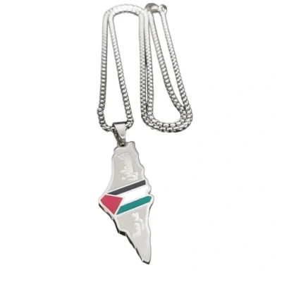 Show your support for Palestine with this intricately designed necklace featuring the outline of Palestine, a symbol of resilience and unity. Perfect for proud Palestinians and advocates of justice and peace. Made from high quality stainless steel, this durable necklace is suitable for those with sensitive skin. This versatile necklace is perfect for fashion forward individuals who appreciate unique accessories that make a statement. Wear this necklace on various occasions, including school, work, and shopping, to demonstrate your support for Palestine and raise awareness of the ongoing struggles faced by the Palestinian people. Whether as a gift or personal accessory, this Palestine map necklace serves as a reminder of your care and support for Palestine. Suitable for everyday wear and special occasions.
