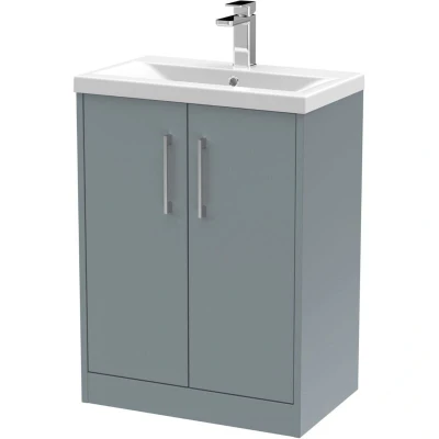 Juno Floor Standing 2 Door Vanity Unit with Basin 1 600mm Wide Coastal Grey Hudson Reed