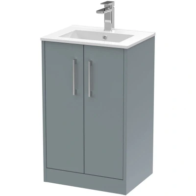 Juno Floor Standing 2 Door Vanity Unit with Basin 500mm Wide Coastal Grey Hudson Reed