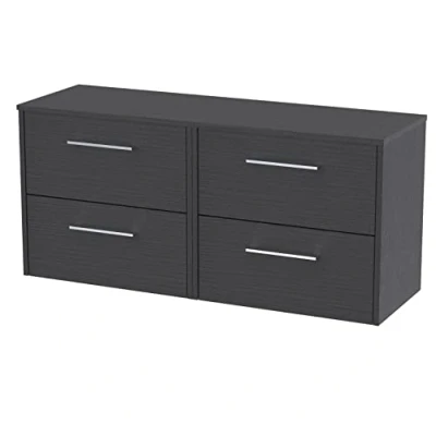 Juno Graphite Grey Woodgrain 1200mm Wall Hung 4 Drawer Vanity Unit with Worktop JNU2224W2 Hudson Reed