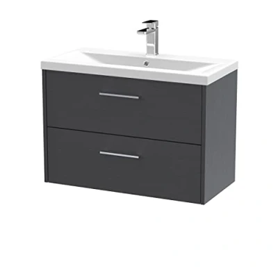 Juno Graphite Grey Woodgrain 800mm Wall Hung 2 Drawer Vanity Unit and Mid Edge Ceramic Basin JNU2226A Hudson Reed