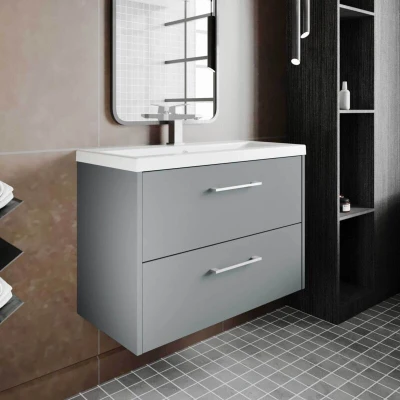 Juno Matt Coastal Grey 800mm Wall Hung 2 Drawer Vanity Unit and Minimalist Ceramic Basin JNU2326B Hudson Reed