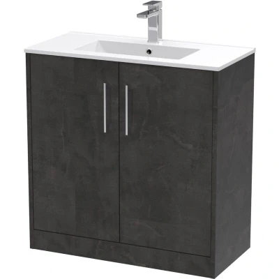 Juno Matt Metallic Slate 800mm Floor Standing 2 Door Vanity Unit and Minimalist Ceramic Basin JNU2605B Hudson Reed
