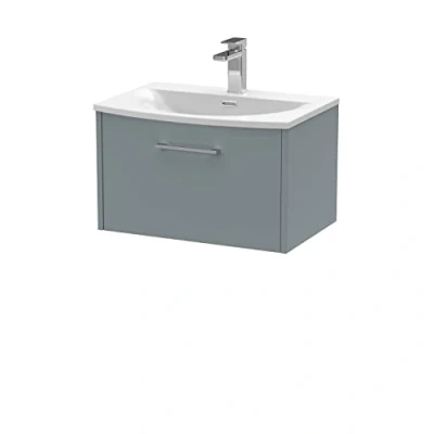 General description This Hudson Reed Juno Matt Coastal Grey 600mm Wall Hung Single Drawer Vanity Unit and Curved Ceramic Basin is a stunning addition to any modern bathroom. It features a sleek matt coastal grey finish that exudes sophistication and elegance. Designed for practicality and aesthetic appeal, it offers a spacious single drawer for storage, ensuring your bathroom essentials are neatly organized and easily accessible. The beautifully crafted curved ceramic basin provides a seamless blend of form and function, perfect for contemporary lifestyles. Built with high-quality MDF, this vanity unit is durable and easy to maintain. The soft-close mechanism on the drawer prevents slamming, adding convenience and safety to your bathroom environment. Technical specifications Model Number: JNU2322G Width: 610mm Depth: 440mm Curved Basin Dimensions: W: 610mm x H: 160mm x D: 440mm Vanity Unit Dimensions: W: 605mm x H: 381mm x D: 390mm Usage Space-saving wall hung design Easy to clean and