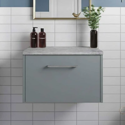 Juno Wall Hung 1 Drawer Vanity Unit with Bellato Grey Worktop 600mm Wide Coastal Hudson Reed