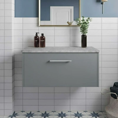 Juno Wall Hung 1 Drawer Vanity Unit with Bellato Grey Worktop 800mm Wide Coastal Hudson Reed