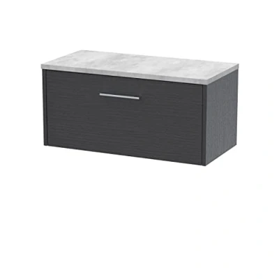 Juno Wall Hung 1 Drawer Vanity Unit with Bellato Grey Worktop 800mm Wide Graphite Hudson Reed