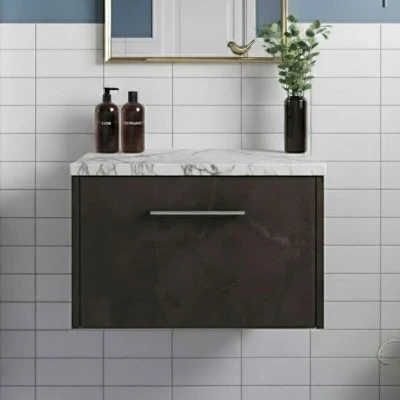 Juno Wall Hung 1 Drawer Vanity Unit with Carrera Marble Worktop 600mm Wide Metallic Slate Hudson Reed