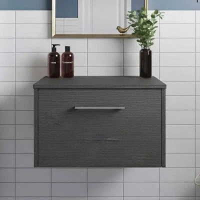 Juno Wall Hung 1 Drawer Vanity Unit with Worktop 600mm Wide Graphite Grey Hudson Reed