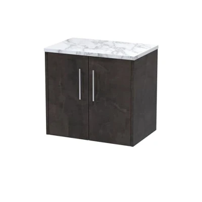 Juno Wall Hung 2 Door Vanity Unit with Carrera Marble Worktop 600mm Wide Metallic Slate Hudson Reed