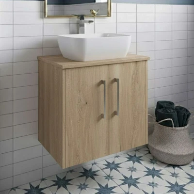 General description Hudson Reed's Juno vanity unit features a contemporary wall-hung design with a crisp outer frame cabinet, perfect for pairing with compatible WC units and side cabinets from the same collection. Available in a luxurious autumn oak finish, this unit offers a stylish and modern look for any bathroom. Technical specifications Total Height (Unit + Countertop): 557mm Total Width (Unit + Countertop): 605mm Total Depth (Unit + Countertop): 390mm Unit Height: 539mm Unit Width: 600mm Unit Depth: 385mm Countertop Thickness: 18mm Weight: 16.70kg Material: MFC Textured Woodgrain Finish: Autumn Oak Doors: 2 Handle Type: Chrome D-handles (192mm centres) Compatibility and accessories Compatible with matching tall units, WC units, and mirror cabinets within the Juno collection. Alternative handle designs and finishes available separately. Vessel basin, traps, and waste sold separately. Installation Supplied rigid - no assembly required on the carcass/cabinet. Includes pre-drilled