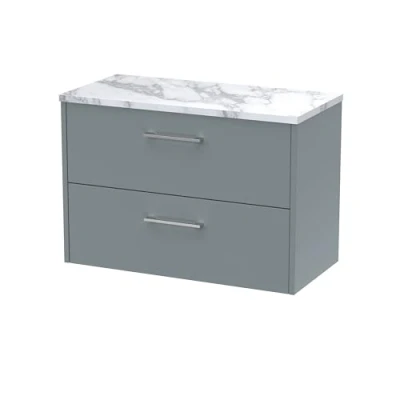 Juno Wall Hung 2 Drawer Vanity Unit with Carrera Marble Worktop 800mm Wide Coastal Grey Hudson Reed