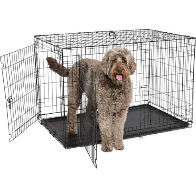JupiterJx Metal Dog Crate Cage, Foldable Puppy Pet Cage With 2 Doors Easy Clean, Durable Carrier Handle & Chew Resistant Plastic Base Tray For Training (Black, 42")