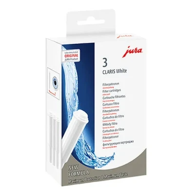 This pack of 3 Claris White filters are compatible with Jura coffee machine with the black filter holder in the water tank.Designed to filter out limescale and harmful substances efficiently from the water only leaving behind minerals and florides which are essential.CLARIS White works according to the professional up-flow principle and always filters exactly the amount of water required for each preparation.